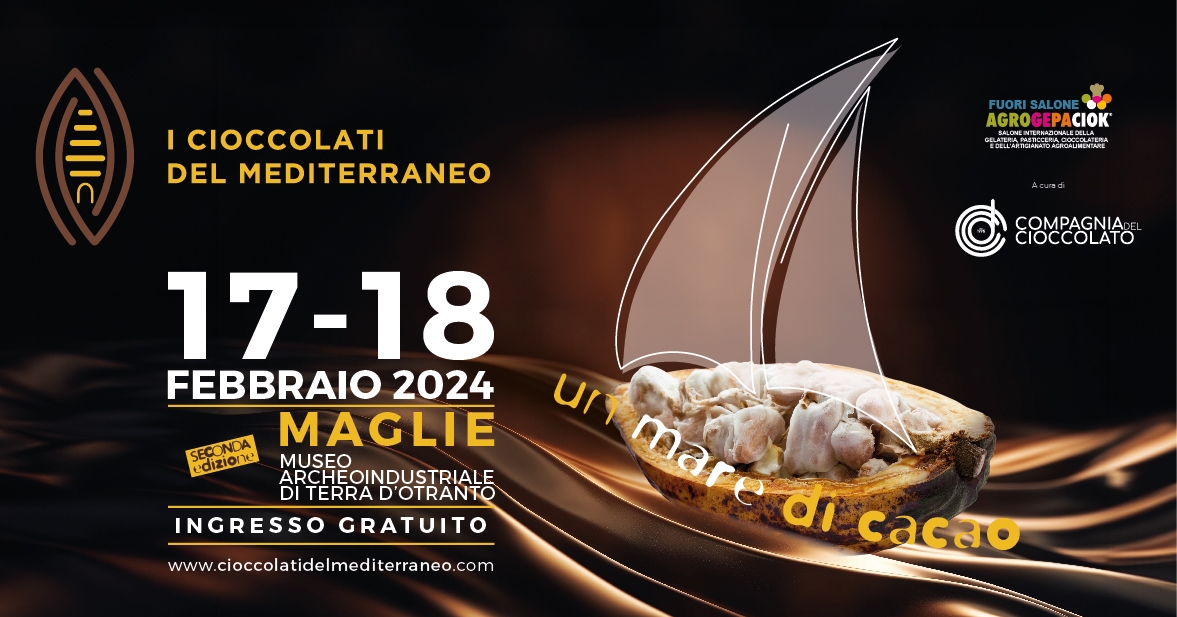 Sabato 17 febbraio e domenica 18 febbraio 2024 si terrà la seconda edizione del Salone “I Cioccolati del Mediterraneo”, presso il Museo Archeoindustriale di Terra d’Otranto nella città di Maglie che per la prima volta apre al pubblico.