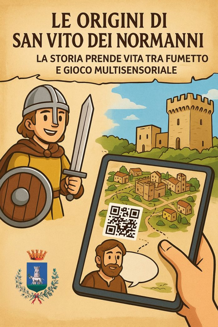 Il titolo del progetto dice già molto: “Le origini di San Vito dei Normanni: la storia prende vita tra fumetto e gioco multisensoriale”. L’obiettivo? Coinvolgere bambini e ragazzi dai 4 ai 14 anni in un’esperienza narrativa e interattiva che li guidi alla scoperta della propria storia locale. Il tutto attraverso un videogioco ancora in fase di sviluppo, pensato per essere fruito sia su schermo che nel mondo reale.
