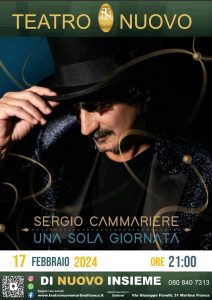Il 17 febbraio, di scena Sergio Cammariere, tra gli interpreti più raffinati ed eclettici della musica italiana che, accompagnato da una formazione di straordinari musicisti, rivisiterà i suoi grandi successi e presenterà gli inediti del suo ultimo album: “Una sola giornata13 canzoni nate dal felice sodalizio che si consolida anche in questo ultimo lavoro discografico con il poeta Roberto Kunstler.