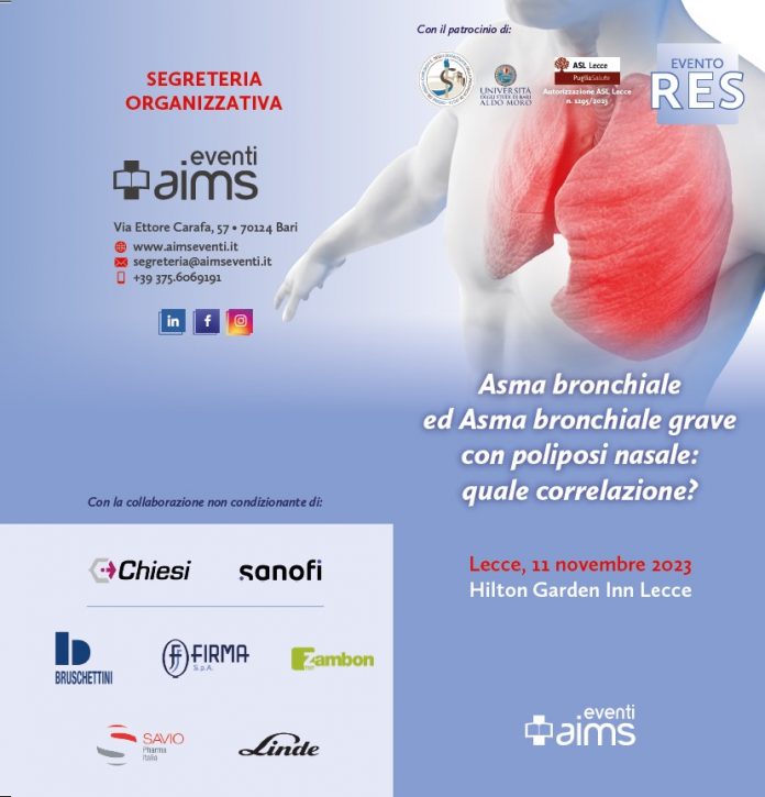 Sarà Lecce ad ospitare, domani mattina, a partire re dalle ore 9 presso l’Hilton Garden Inn in via Cosimo De Giorgi, il convegno sul tema “Asma bronchiale ed Asma bronchiale grave con poliposi nasale: quale correlazione?”.