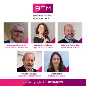 Il Comitato, coordinato da Mary Rossi, event manager BTM Puglia, è composto da eccellenze del mondo accademico, della comunicazione e da esperti dell’industria turistica: Giuseppe Giaccardi, consulente di strategia e organizzazione; Nicoletta Polliotto, digital project manager ed esperta di food & restaurant marketing; Rodolfo Baggio, docente di Tourism Analytics e Strategie Digitali; Edoardo Colombo, esperto di innovazione, specializzato nella trasformazione digitale del turismo e, new entry del gruppo, Martha Friel, docente di Management e Cultura del Turismo alla IULM di Milano.