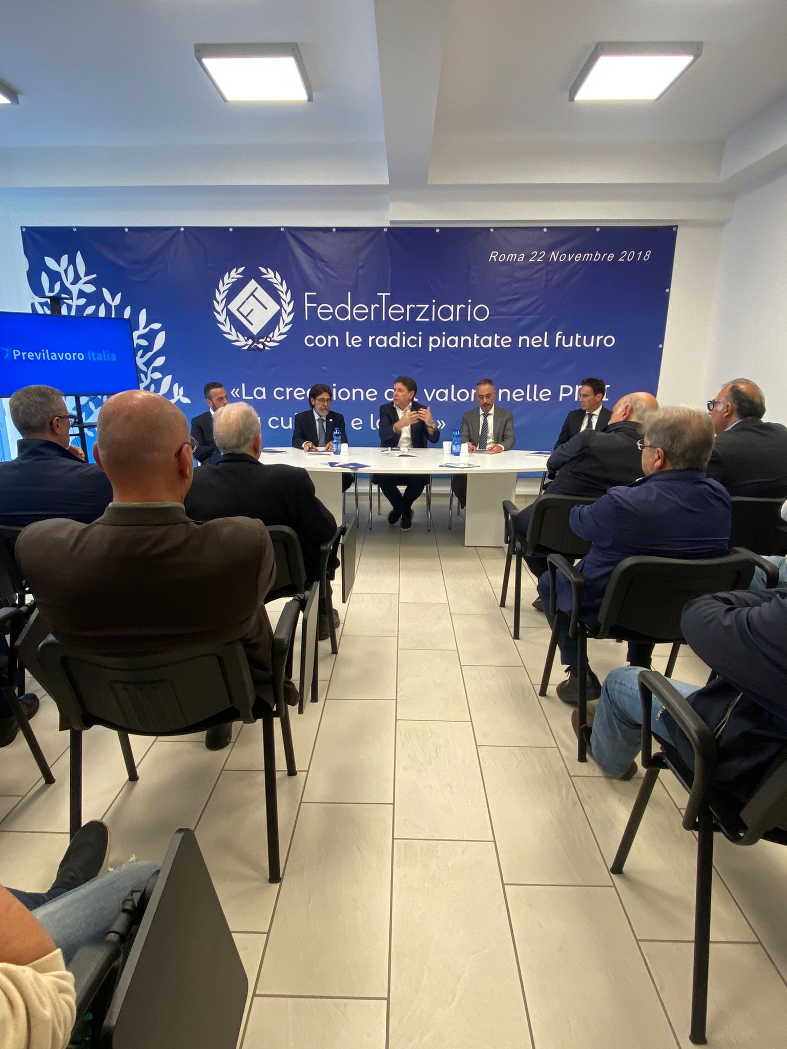 Ad accogliere l’ex Presidente del Consiglio è stato il segretario generale di FederTerziario, Alessandro Franco che ha fatto gli onori di casa.