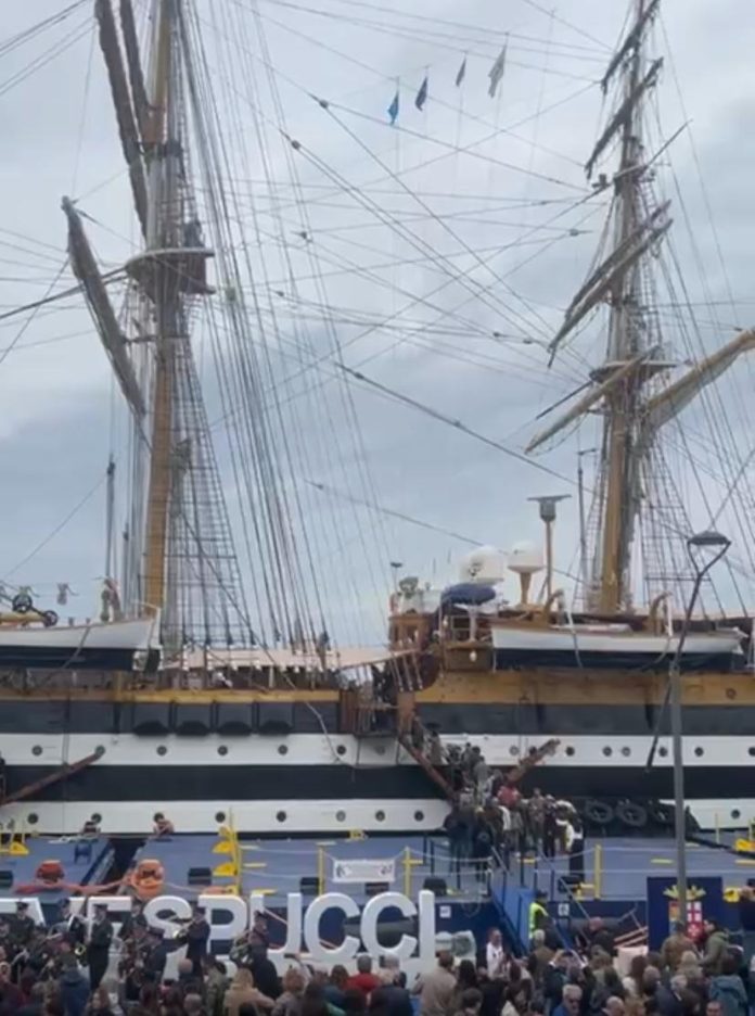 Turisti e appassionati avranno tempo fino a domani per salire a bordo della prestigiosa nave scuola, ormeggiata sul lungomare Regina Margherita della Marina Militare, per carpirne i segreti e respirarne la storia di cui è impregnato ogni suo angolo.