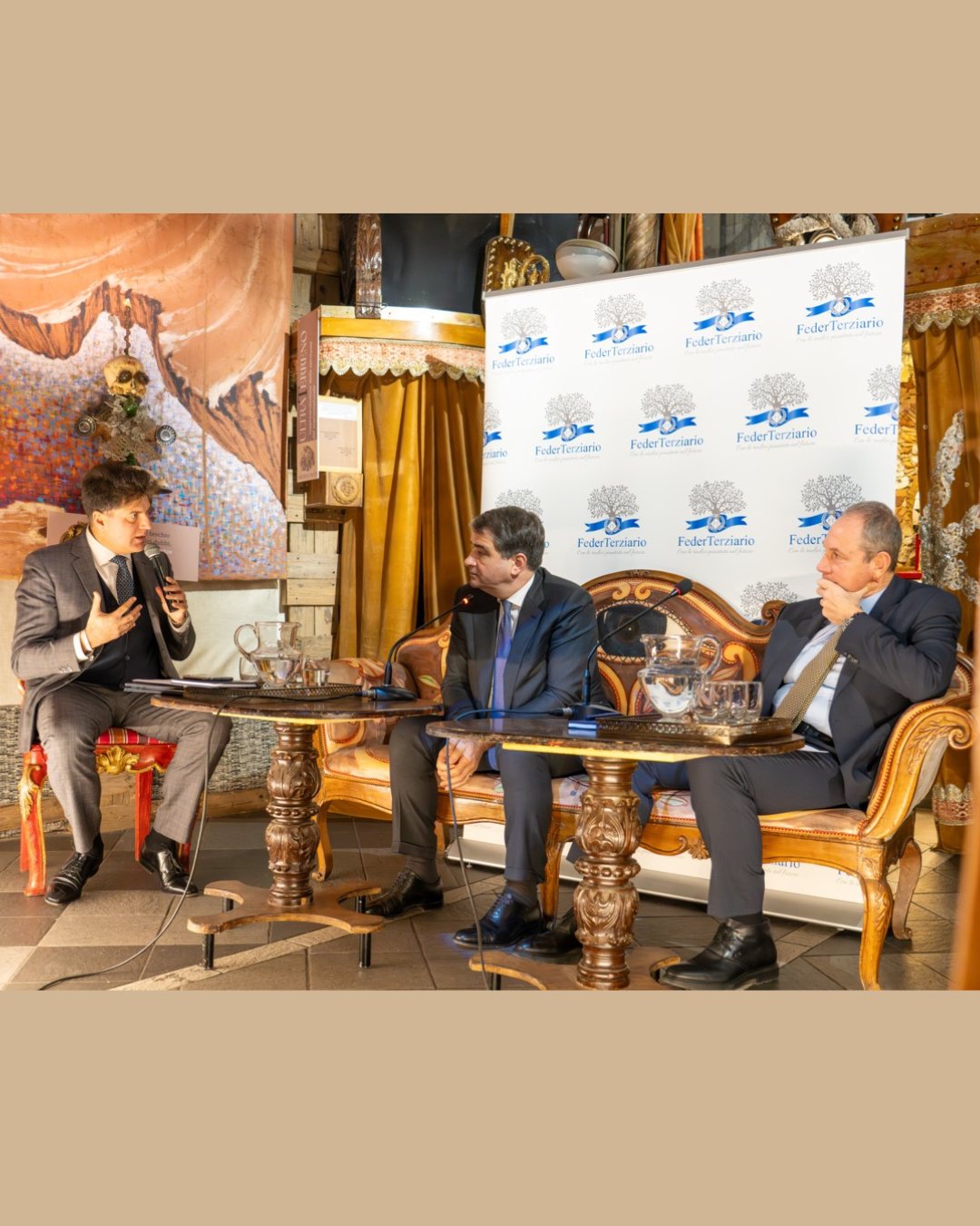 Al centro del dibattito il Vicepresidente esecutivo della Commissione europea per la Coesione e le Riforme Raffaele Fitto, che ha dialogato con il presidente di Federterziario Nicola Patrizi e il segretario generale Alessandro Franco, davanti a una platea composta da numerosi associati e rappresentanti delle strutture territoriali della Confederazione. Una partecipazione ampia, a testimonianza del forte interesse del mondo produttivo verso temi cruciali come competitività, semplificazione amministrativa e utilizzo delle risorse europee.