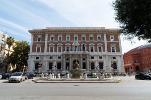 L’imponente palazzo, sede della filiale regionale della Banca d’Italia, è stato realizzato su progetto dell’ingegner Accolti Gil e inaugurato nel 1932. La struttura architettonica, che si sviluppa su quattro livelli oltre al piano interrato, con ingresso monumentale, è in stile eclettico, caratteristico dell’epoca: riflette i canoni dello stile manierista, rievocando i palazzi civili e nobiliari romani e presenta numerosi elementi di pregio, a partire dal Salone del Pubblico, con le vetrate artistiche dei velari a soffitto di ispirazione liberty. Lo scalone in marmi pregiati conduce fino al primo piano dove, accanto agli ambienti di Direzione, si può ammirare la Sala del Consiglio, caratterizzata da un pregevole soffitto a cassettoni. Di notevole valore artistico sono i bassorilievi in marmo di Carrara dello scultore Gianni Remuzzi di Bergamo, posti alle pareti dell’atrio e del Salone del Pubblico e che rappresentano i temi dell’economia, dell’agricoltura, della pesca e del commercio, dell’istituzione bancaria; si segnalano, inoltre, i bassorilievi in bronzo patinato e marmo di Giuseppe Albano, raffiguranti generi mitologici e allegorici. Le visite proposte in occasione delle Giornate FAI d’Autunno permetteranno al pubblico di scoprire l’edificio, tra i più importanti della città, visitando anche sale solitamente inaccessibili.
