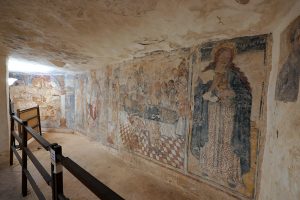 Custodita per secoli dalla devozione degli abitanti del luogo, la Cripta del Gonfalone di Galatina – risalente all’epoca bizantina (VIII- XI secolo) – è meta di pellegrinaggi che si concentrano nelle giornate di fine agosto con una fiera espositiva e con spettacoli di musica tradizionale. Incastonata nella campagna e circondata da uliveti, è un vero e proprio gioiello dell’arte bizantina che testimonia la forte influenza del culto greco-ortodosso nel Salento. La sua bellezza e singolarità si rivela già con il campanile a vela e la struttura in pietra, visibili percorrendo la strada provinciale. Ma è discendendo per le strette scale che portano alla cripta che il visitatore si ritrova immerso in un tempo passato, rimasto intatto e preservato. L’invaso è stato scavato nel banco roccioso ed è sostenuto da una selva di colonne e pilastri, mentre la zona centrale è dominata da un piccolo altare “balaustrato”. Il sacello inquadra un’icona della Madonna con Bambino attraverso un ovale circondato da ricche ornamentazioni vegetali di gusto seicentesco e culminante con un timpano triangolare. All’interno sono presenti diversi affreschi cinquecenteschi: ritratti di santi, come Maria Maddalena, San Paolo, ma anche una Crocifissione e la Dormitio Virginis. Le visite proposte in occasione delle Giornate FAI consentiranno di fare un tuffo nella spiritualità medioevale e nella bellezza di questo luogo, solitamente non accessibile al pubblico.