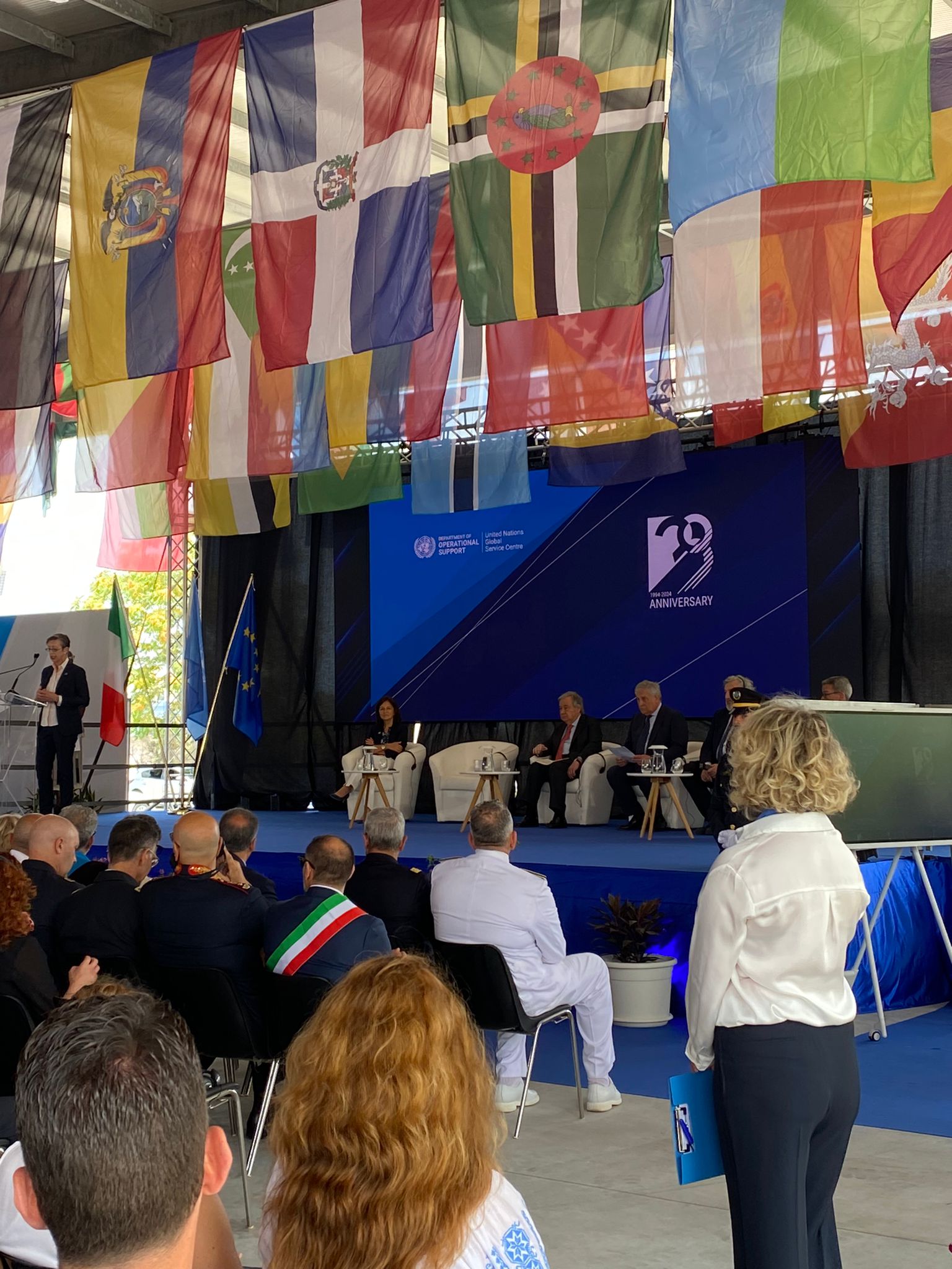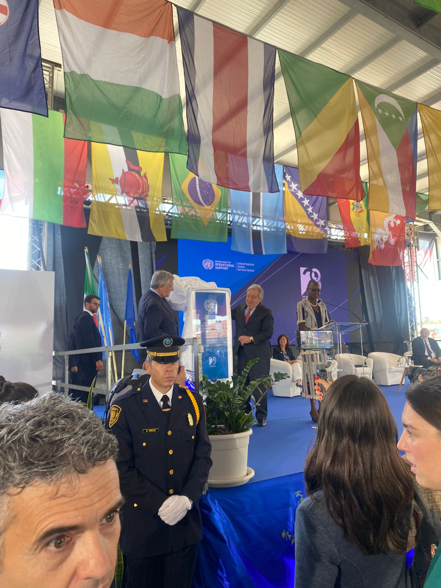 Nel corso della cerimonia sono intervenuti, tra gli altri, il sindaco di Brindisi Giuseppe Marchionna, la direttrice dello United Nations Global Service Centre Giovanna Ceglie che ha ricordato che negli ultimi 20 anni, dalla base, sono stati consegnati merci e scorte per un valore totale di 750 milioni di euro, e il presidente della Regione Puglia, Michele Emiliano. <<Questa è una base importantissima per tutte le azioni di pace dell’ONU nel mondo – ha dichiarato il Governatore – ed è simbolo della cooperazione internazionale finalizzata al dialogo. Speriamo che questa realtà possa continuare a crescere>>.