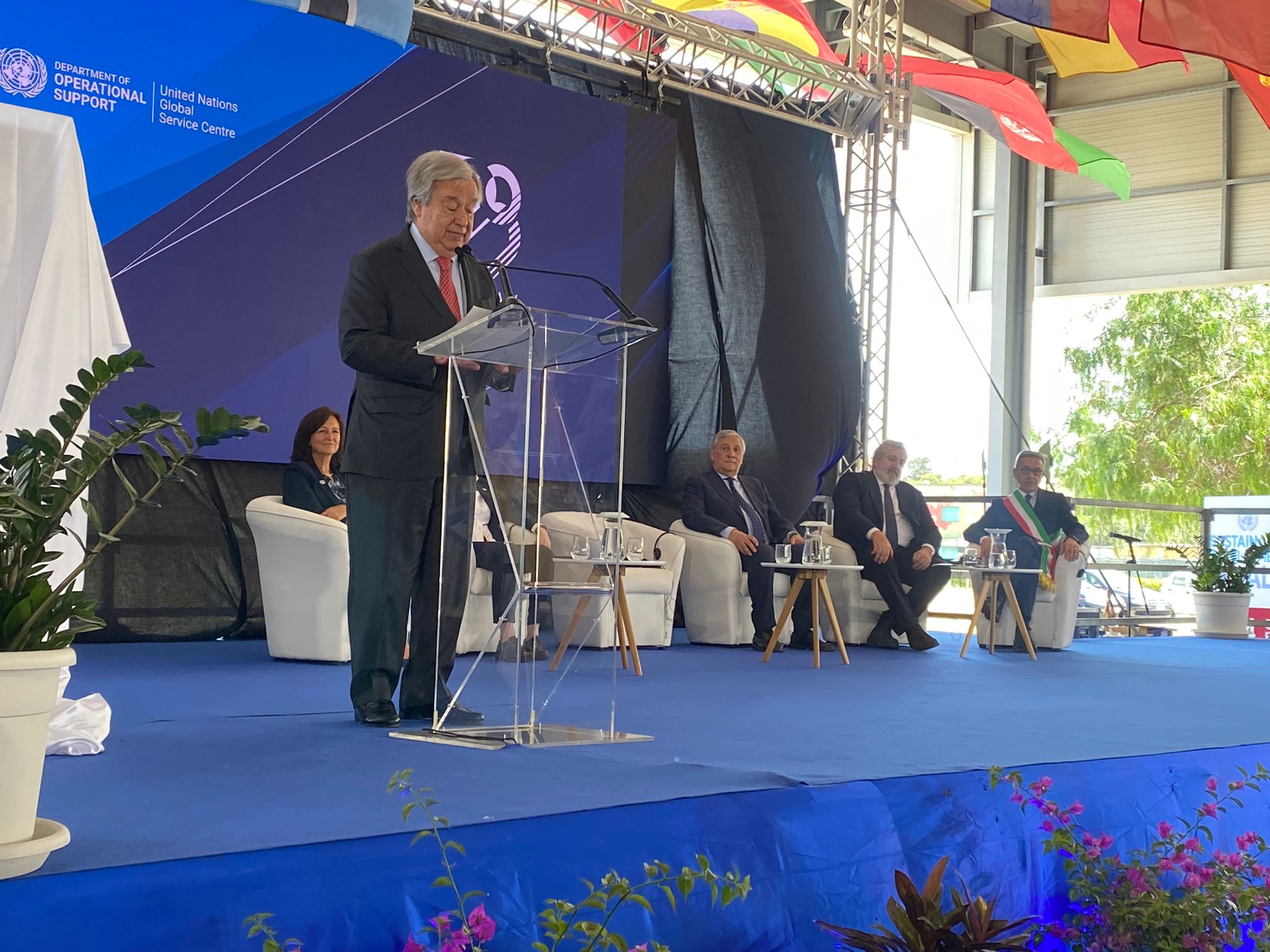<<La bandiera delle Nazioni Unite sventola cono orgoglio da Brindisi a Roma, Firenze, Torino, Venezia, Trieste. Il fatto che l’Italia ospiti il Vertice del G7 in questi giorni, è un alto esempio del suo impegno per la solidarietà e le soluzioni globali. In tempi difficili come quelli odierni, il mondo ha bisogno che tutti i Paesi si facciano avanti e che facciano la loro parte per forgiare un futuro di pace e sostenibile per tutti. Lo vediamo in tutta la sua evidenza qui a Brindisi. Grazie a tutti voi per aver costruito il patrimonio di questo centro. Grazie alla Puglia e all’Italia per averci ospitato>>. Parole di speranza che suonano come un appello rivolto a tutti, quelle pronunciate dal Segretario Generale dell’ONU António Guterres, oggi in visita ufficiale al Centro Servizi Globale delle Nazioni Unite (UNGSC), il polo operativo dell’ONU, a Brindisi, in occasione delle celebrazioni per i 30 anni di servizio dell’ UNGSC che attualmente che oggi è a tutti gli effetti un centro di servizi multifunzionale. Un motivo d’orgoglio per la Puglia e per l’Italia tutta, come ha sottolineato nel suo intervento Vicepresidente del Consiglio dei Ministri e Ministro degli Affari Esteri e della Cooperazione Internazionale dell’Italia Antonio Tajani. <<Il personale di questa base, a partire dalla sua direttrice, Giovanna Ceglie – ha affermato Tajani – opera con efficacia e sicurezza. Il fatto, poi, che si trovi in una posizione così strategica, al centro de Mediterraneo, permette di sostenere l’ONU nelle aree di crisi. E proprio da qui partiranno i primi carichi di aiuti umanitari per Gaza, con il progetto ‘Food for Gaza’,con l’invio di alimenti e beni sanitari per la popolazione civile palestinese>>.