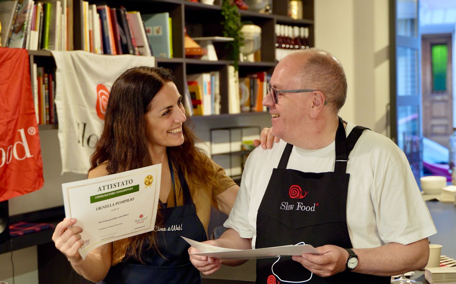 A concludere l’esperienza, il brindisi finale con il presidente della Condotta Slow Food di Molfetta/Bisceglie Pierluigi Ruggieri, che valuta i contenuti digitali prodotti dai partecipanti e premia ciascuno con un attestato simbolico di “Consumatore Consapevole”.
