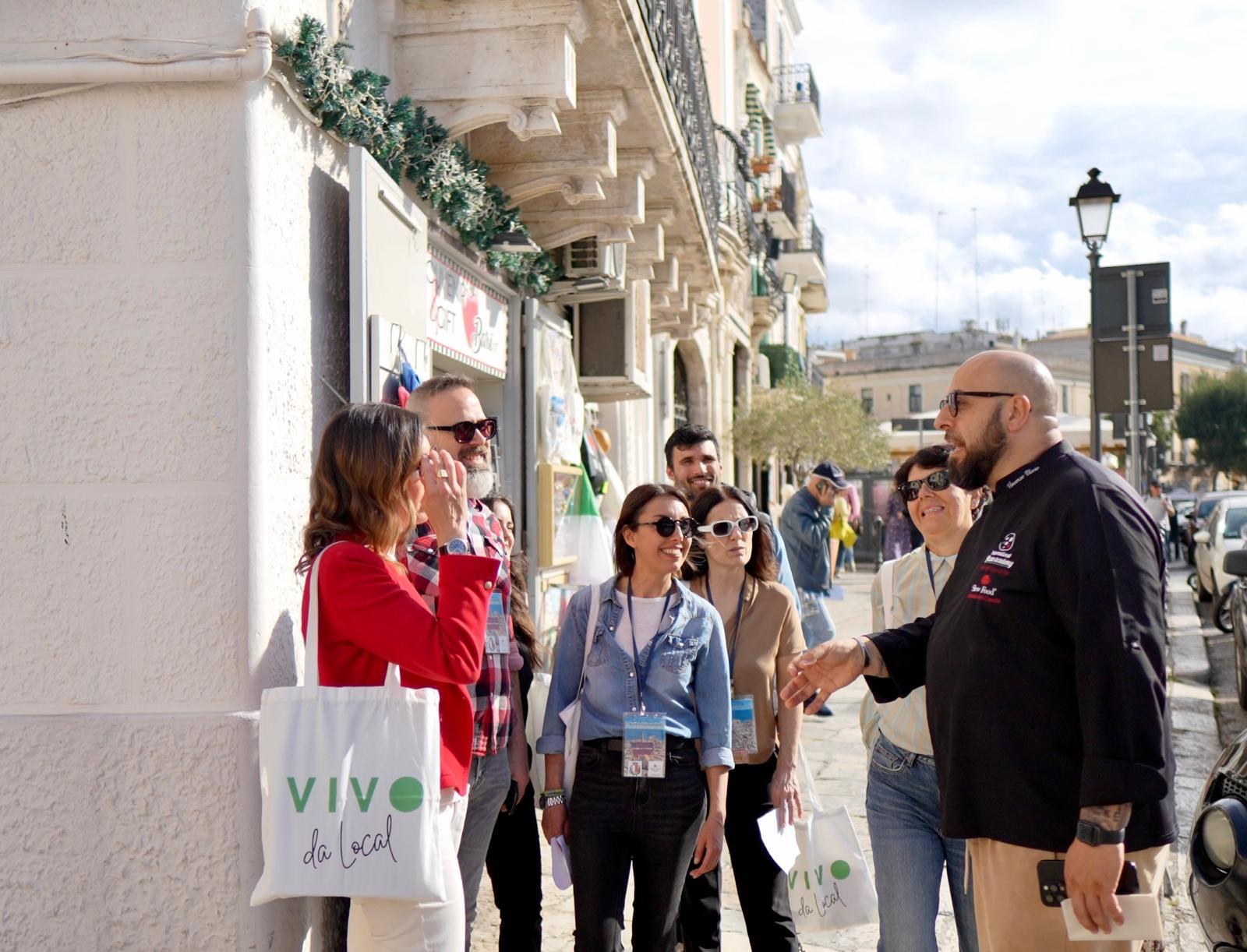 I visitatori, forniti di una mappa e guidati dal cuoco Vincenzo Florio rappresentante dell’Alleanza dei cuochi Slow Food (ma anche pizzaiolo, autore, imprenditore, ambasciatore del gusto, docente e consulente della International Pizza Academy. https://www.floriovincenzo.it) hanno percorso i vicoli del borgo antico alla scoperta di botteghe storiche come “U Passatimb” e “Nino – il Salumiere”, dove hanno avuto l’opportunità di acquistare e conoscere i prodotti tipici. Ad arricchire l’esperienza, l’incontro con un pescatore sulla battigia che ha raccontato aneddoti e strumenti del mestiere, rendendo ancora più autentico il contatto con la cultura locale.