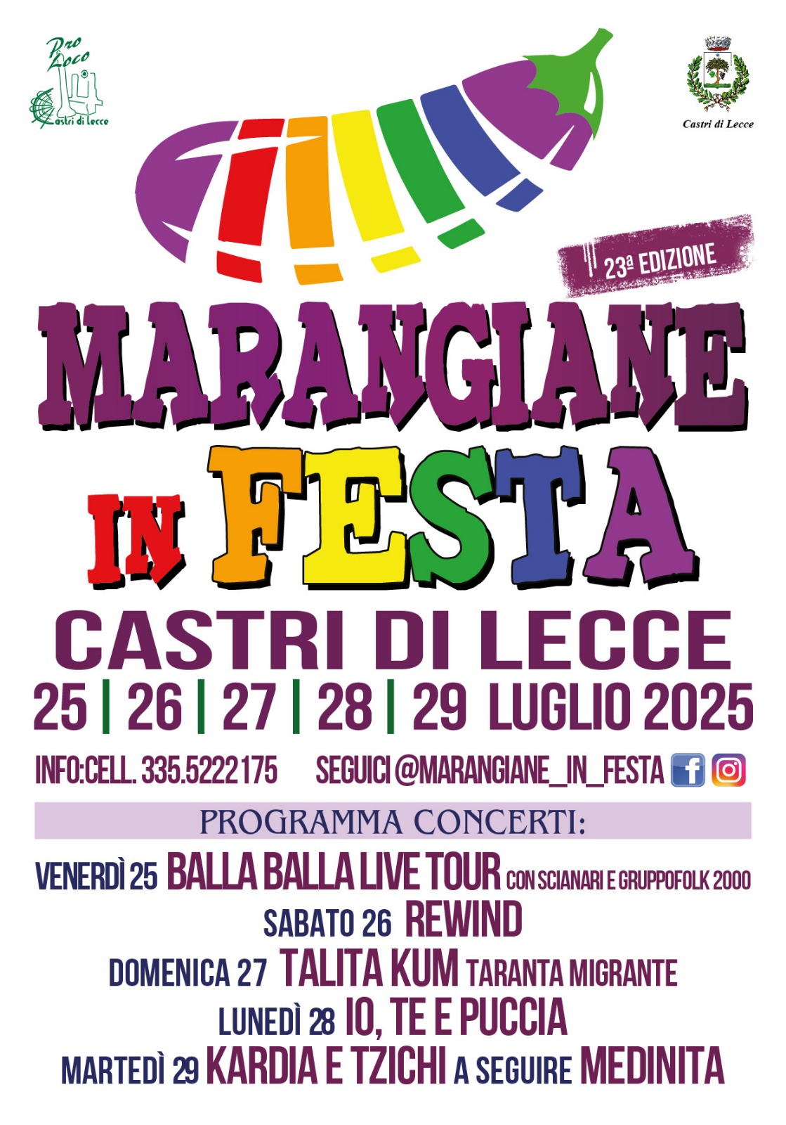 Prende il via oggi a Castrì di Lecce la 23^ edizione di “Marangiane in Festa”, la tradizionale sagra dedicata alla melanzana che, fino al 29 luglio, animerà il paese con cinque serate all’insegna del gusto, della musica e della convivialità.