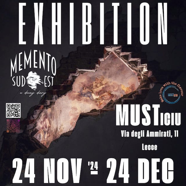 La mostra MementoSudEst verrà inaugurata domenica 24 novembre e sarà ospitata da MUSTiciu, l’area bar del MUST di Lecce in via Degli Ammirati, 11, in una cornice d’eccezione rappresentata da un palazzo storico ristrutturato che ben si coniuga con il progetto, e sarà visitabile fino al prossimo 24 dicembre.