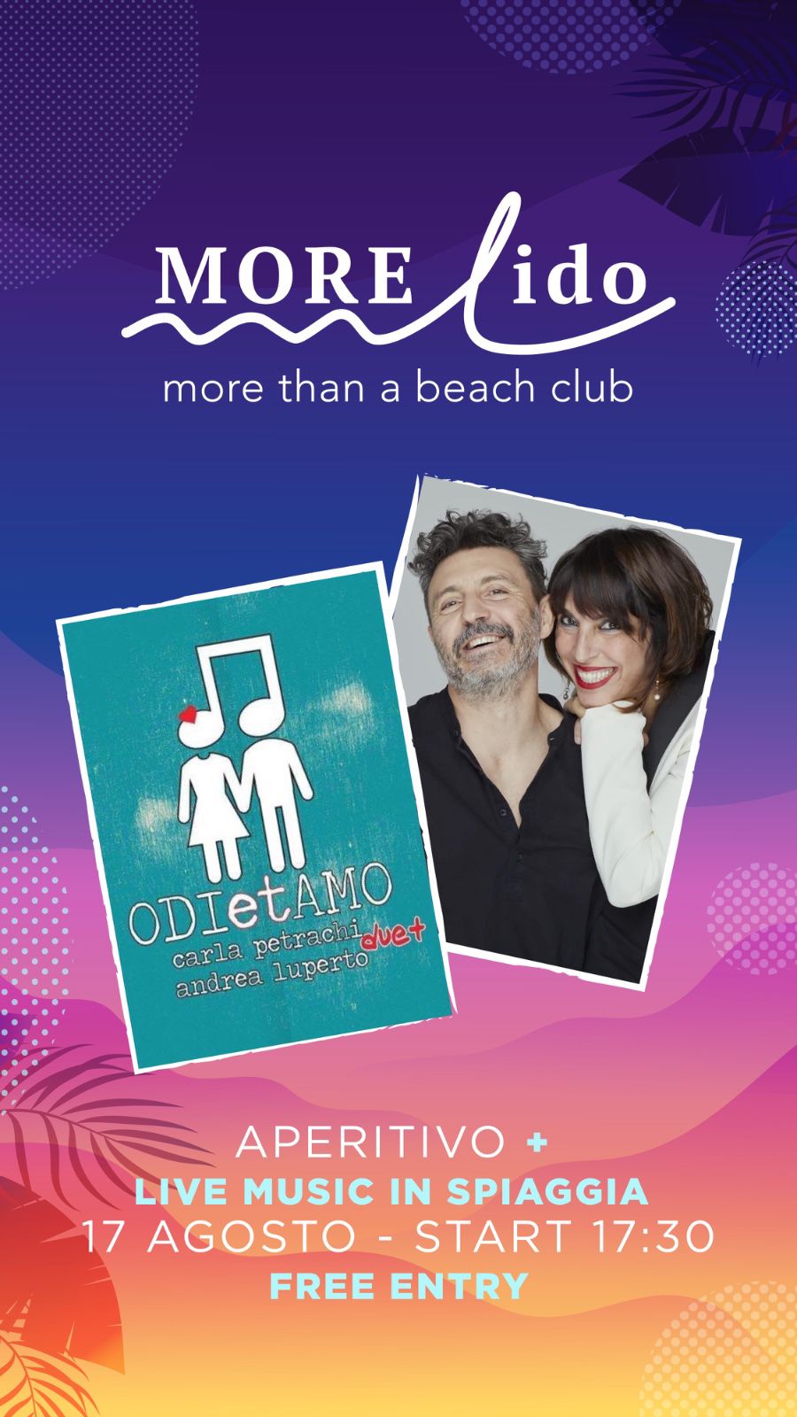 Tra le iniziative più apprezzate, l’ormai iconico aperitivo con live music in spiaggia. Il prossimo appuntamento, assolutamente da non perdere, è in programma domenica 17 agosto a partire dalle 17.30 con Carla Petrachi e Andrea Luperto.