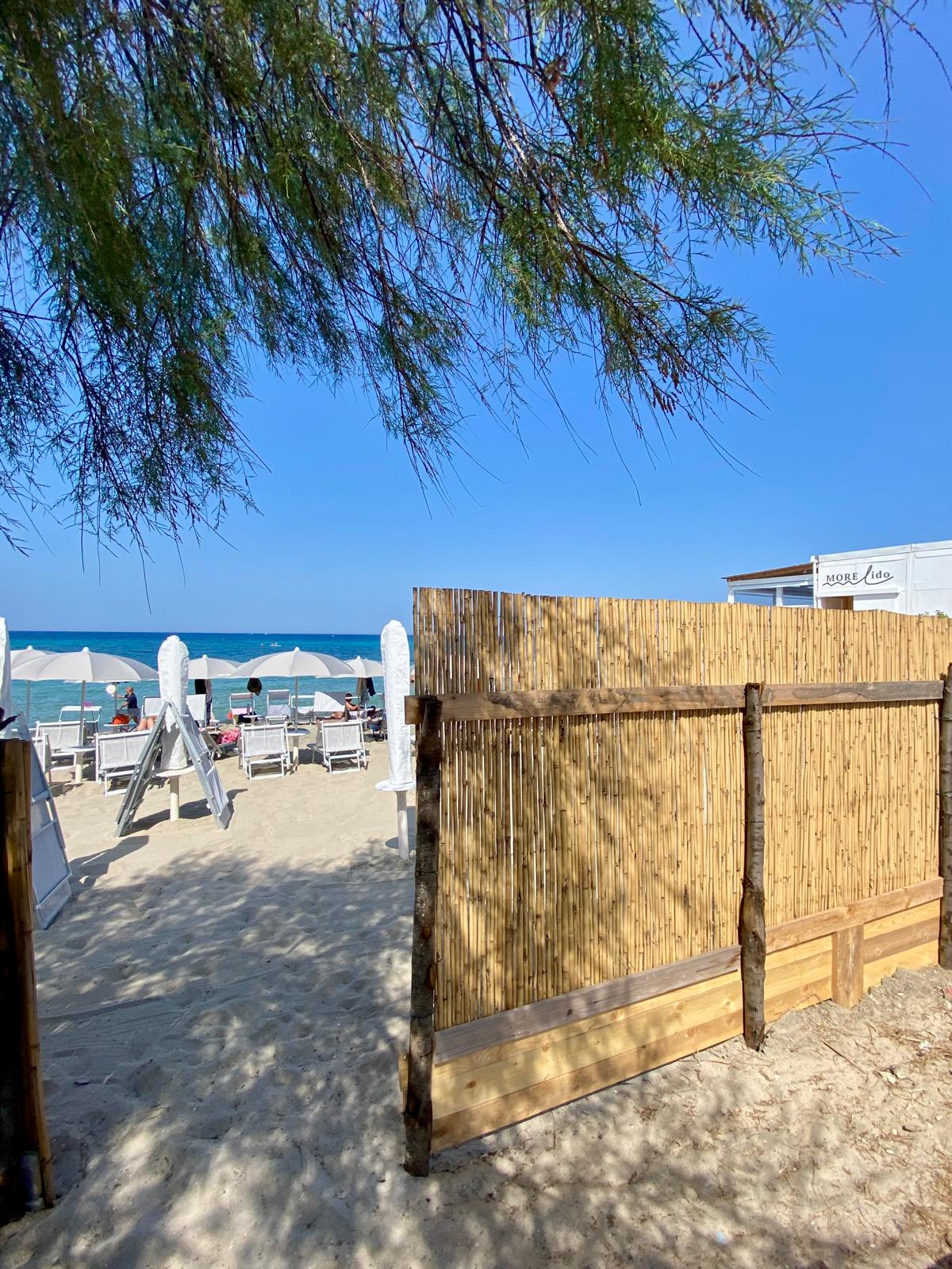Immerso in un tratto di litorale ancora autentico e poco battuto dal turismo di massa, il lido si distingue per bellezza ma anche per l’accoglienza riservata. Una sessantina di ombrelloni, tra l’altro ben distanziati tra loro, ognuno corredato da comodi lettini, garantiscono il massimo comfort e una privacy rara da trovare altrove. La cura dei dettagli è visibile ovunque: dai materiali naturali delle strutture, alle finiture in legno chiaro che richiamano le nuance della sabbia, fino alla musica in sottofondo, mai invadente, che accompagna la giornata senza mai sovrastare il suono delle onde. Su richiesta è possibile, per chi lo volesse, noleggiare anche teli mare.