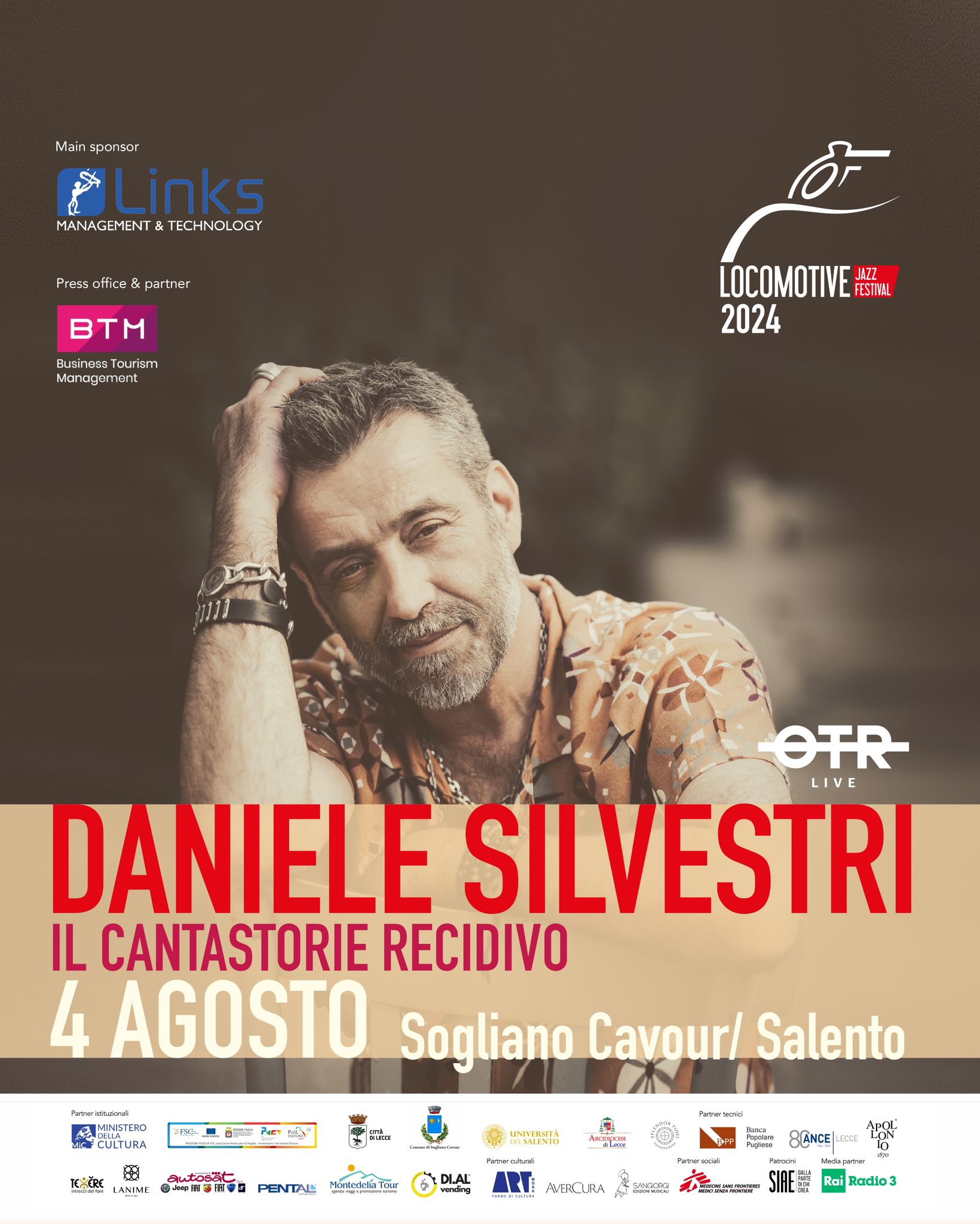 con MATTEO PAGGI, FRANCESCO DIODATI, FRANCESCO PONTICELLI, EVITA POLIDORO. Ore 23:15 premiazione finalisti LOCOMOTIVE GIOVANI 2024, in collaborazione e con il sostegno di ANCE LECCE. A seguire, LOCOMOTIVE GIOVANI 2024 live.