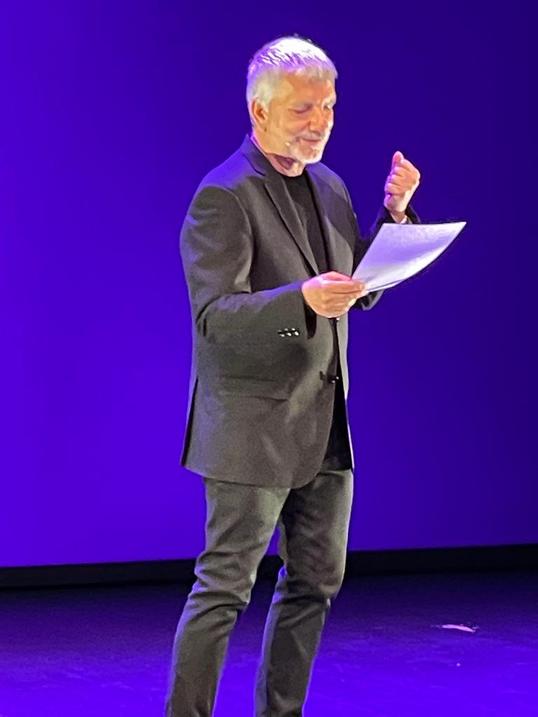 Dalla guerra alla pandemia, dall’inaridimento della relazioni umane alla fatica del quotidiano vivere, dall’ambiente ad una politica che sembra non saper ritrovare il bandolo della propria missione, dalla violenza delle parole a quella – inaudita ed ancora più insopportabile – dei silenzi e delle cose non dette, dalla rinuncia all’umanità di chi commette un femminicidio all’orgoglio omosessuale che non deve essere derubricato a bieca ostentazione per farsi – invece – inno all’unicità ed alla singolarità, dalla gioia della paternità e delle irretrattabili responsabilità ad essa connesse alla bellezza di uno sguardo ed allo struggimento di un canto; Nichi Vendola ha prestato la sua voce, i suoi occhi ed il suo corpo ad un racconto sospeso in uno spazio emotivo che ogni spettatore ha poi riempito restituendoglielo ebbro di emozioni nuove.