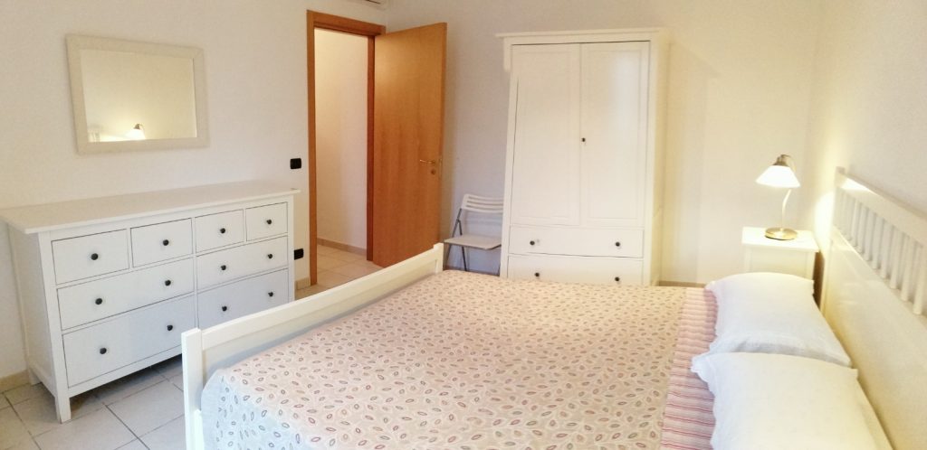 L’appartamento si trova al primo piano ed è composto da un soggiorno-tinello con cucina attrezzata, due camere da letto (una matrimoniale e una doppia), un ampio bagno, due balconi e un posto auto privato e riservato. È possibile pranzare e cenare all’aperto, sulla terrazza con vista mare oppure sul balcone cui si accede dal soggiorno. I punti di forza della casa sono senza dubbio la luminosità di tutte le stanze arredate con gusto e ariose, la sua struttura nuova e ben rifinita, l’arredamento moderno e la presenza di una piscina illuminata anche di notte e a cui è possibile accedere sempre.