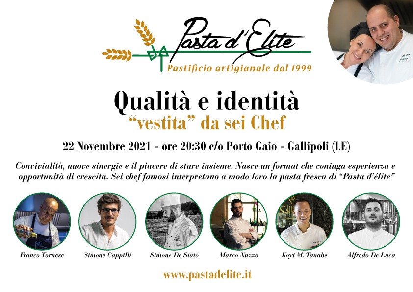 Convivialità, nuove sinergie e il piacere di stare insieme. Nasce un format che coniuga esperienza e opportunità di crescita. Sei chef famosi interpretano le specialità di “Pasta d’élite”.