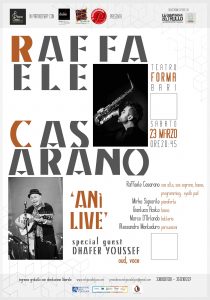 È quello che si apprestano a fare Raffaele Casarano e Dhafer Youssef protagonisti di ANI’ Live, concerto dall’anima multipla in cui si intrecceranno jazz, rock, elettronica e sonorità arabe sottolineate dall’acustica profonda e a tratti ipnotica dell’oud. Sul palco, insieme a loro, artisti di spessore come Mirko Signorile (pianoforte); Gianluca Aceto (basso); Marco D’Orlando (batteria); Alessandro Monteduro (percussioni),