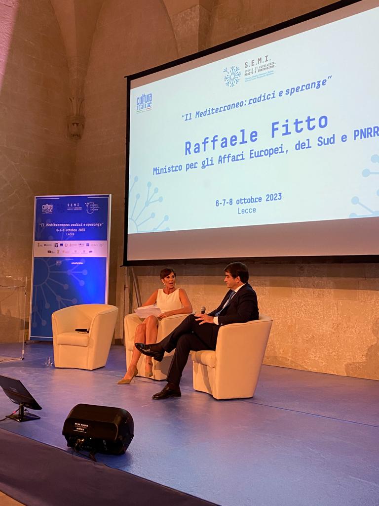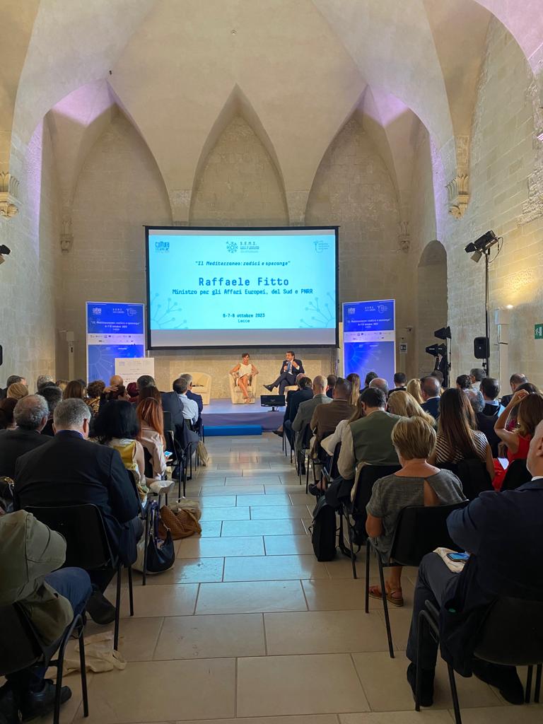 Tra gli ospiti, anche il Ministro Raffaele Fitto: << È giusto riflettere insieme sulle opportunità delle speranze, oltre che delle radici, che nascono nel Mediterraneo e lo farei partendo da elementi di strettissima attualità che evidenziano l’urgenza e la gravità della situazione. Sono reduce dal vertice di Granada, una due giorni di confronto a livello internazionale, con il Presidente del Consiglio Giorgia Meloni, proprio sull’urgenza-emergenza migratoria. L’incontro ha evidenziato la necessità di operare strategie mirate da mettere in campo non solo a livello nazionale ma europeo>>.