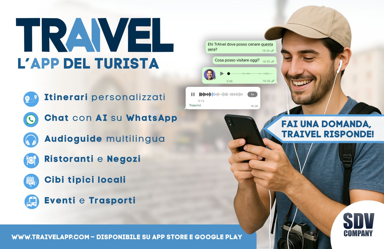 Disponibile sia come app nativa su App Store e Google Play, sia come PWA navigabile via browser all’indirizzo www.traivelapp.com, TrAIvel mette a disposizione dei viaggiatori una vasta gamma di informazioni geolocalizzate: dai monumenti ai musei, dagli eventi ai mercatini, dalla ristorazione tipica allo shopping locale, fino a suggerimenti su esperienze ed escursioni.