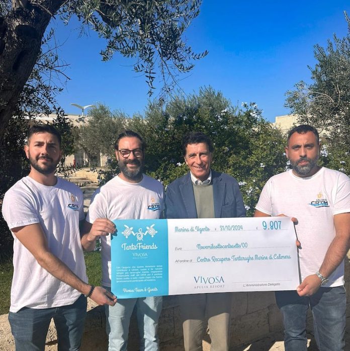 “L’augurio – spiega l’AD di Vivosa Apulia Resort, Damiano Reale – è che questa donazione possa contribuire a continuare a salvare e curare le tartarughe marine, e a far nascere nuovi esemplari. Da parte nostra non possiamo che esprimere un sentito ringraziamento a tutto lo staff del CRTM per il prezioso lavoro svolto in questi anni”.